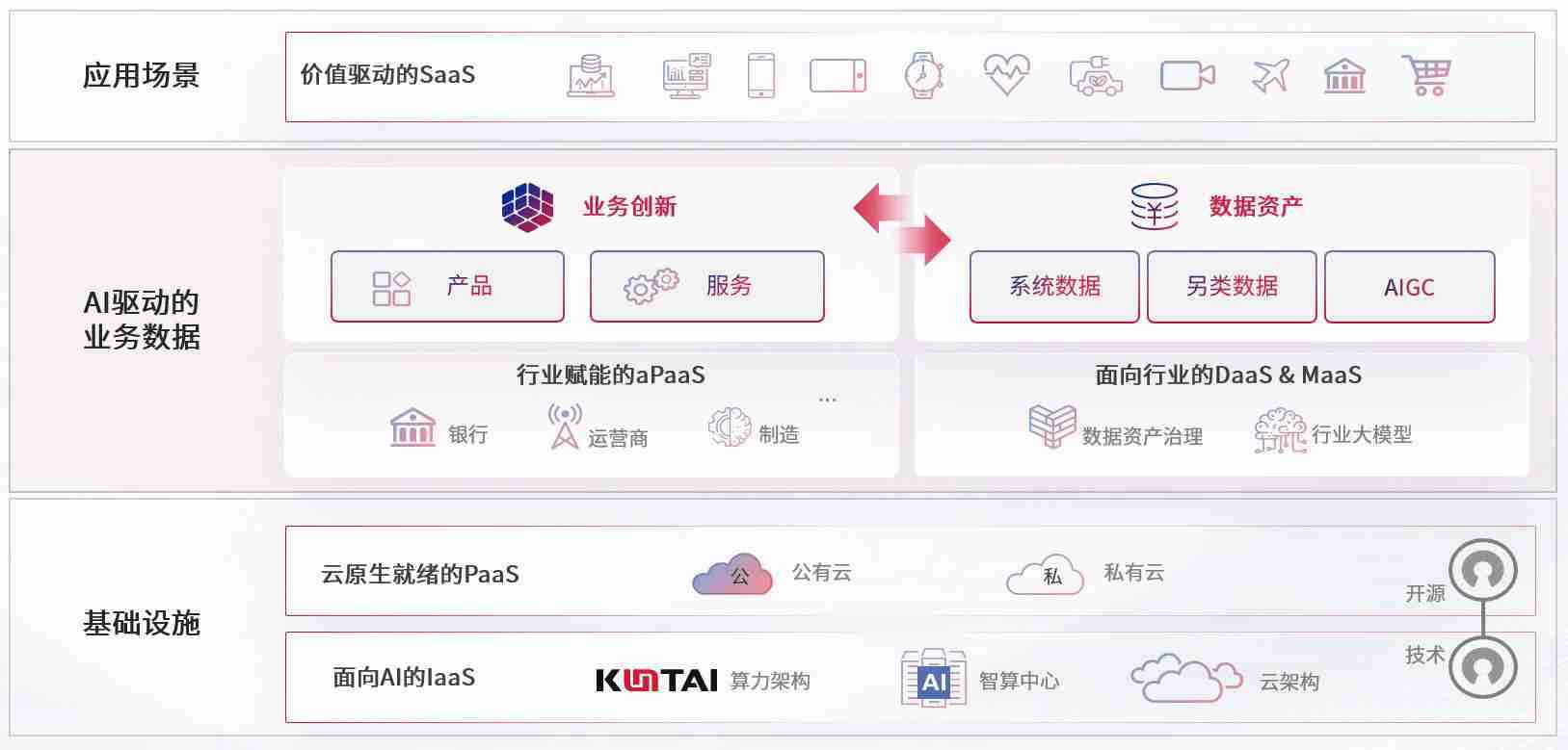 数字时代,,,,围绕企业数字化转型的关键要素,,,,耀世娱乐数码开创性的提出数云融合战略和技术体系框架,,,着力在云原生、、、、数字原生、、、、AI原生和信创产业上架构产品和服务能力,,,为处在不同数字化转型阶段的快消零售、、、汽车、、、、金融、、医疗、、、政企、、教育、、运营商等行业客户提供泛在的敏捷IT能力和融合的数据驱动能力,,,构建跨界融合创新的数字业务场景和新业务模式,,助力企业级客户建立面向未来的核心能力和竞争优势,,全面推动社会的数字化、、、智能化转型升级。。。。